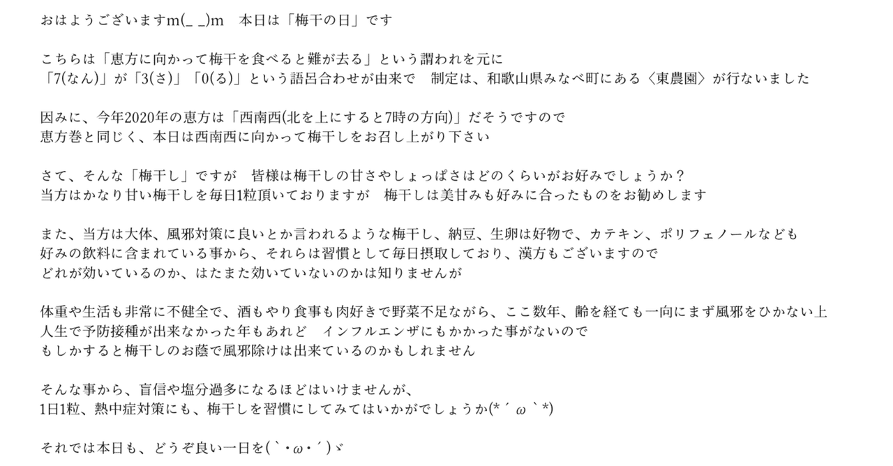 日記 ごめんよ 梅干し Hum Fukuoka Note